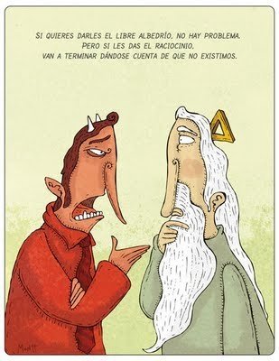 1. Y bueno además que si de verdad existe un dios, el bicho se fue y eso los hace irresponsable porque por razón no puedo decir que existe porque no hay pruebas y es pura especulación. Pero tampoco puedo negarlo por la misma razón de que no se sabe de ningún dios hasta ahora.Mira este video Alberto: http://www.youtube.com/watch?v=4uKQT-BKzwIEsta bien que le sentido a su existencia con lo que quieran que en este caso es Dios, esta bien, pero lo que si se le vale una critica es la forma en que utilizan conceptos científicos de esa forma errada e irresponsable con ellos mismos, quedan como unos ignorantes fanáticos. Todo el publicoenajenado