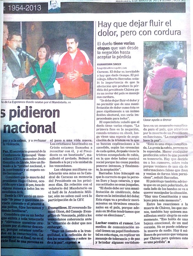 Entrevista que me hicieron en últimas noticias sobre el duelo
