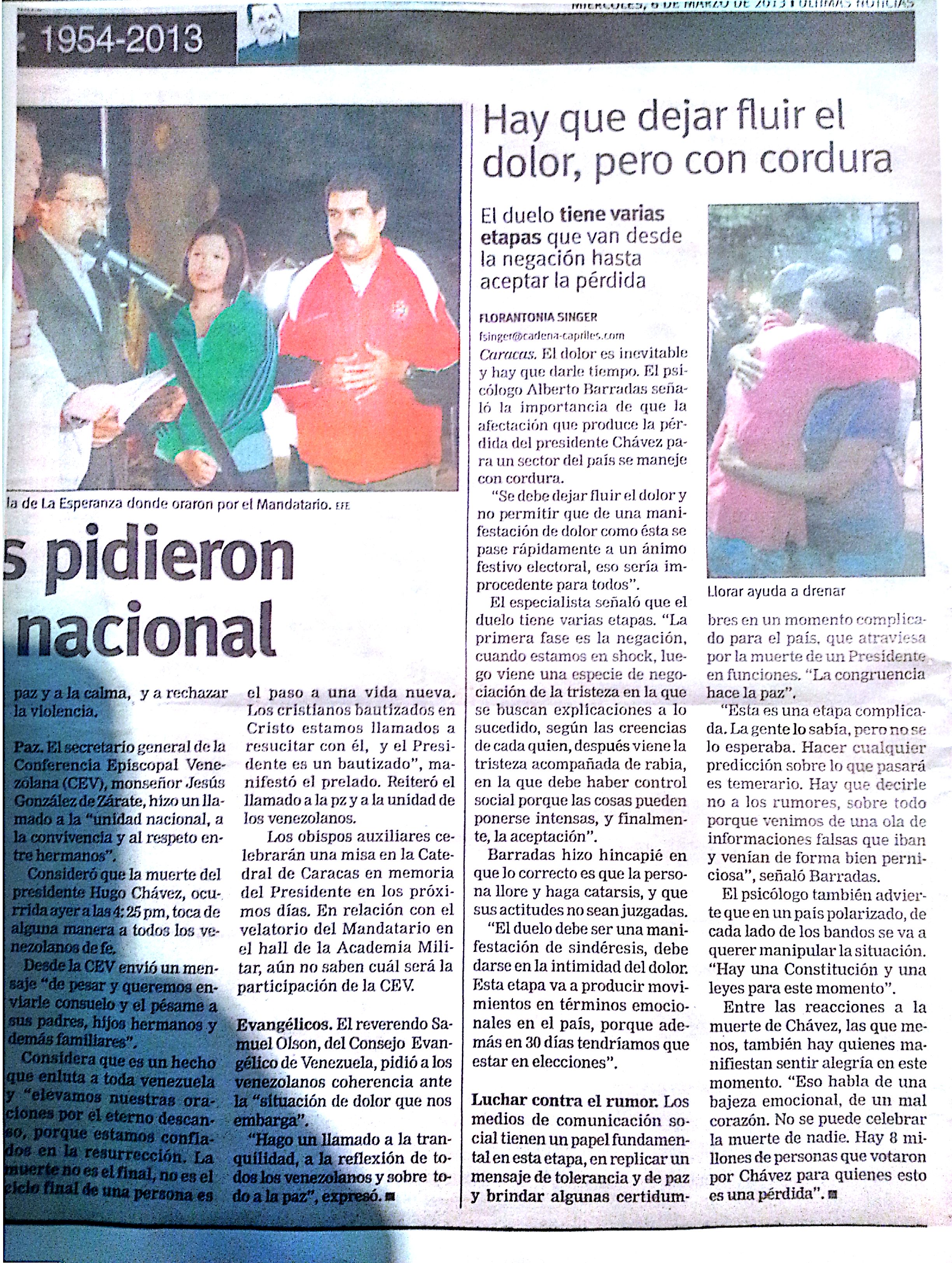 Entrevista que me hicieron en últimas noticias sobre el duelo