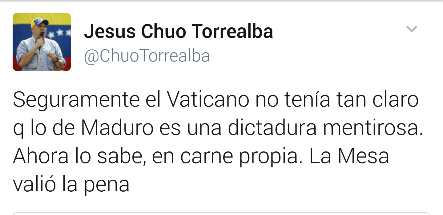 Lamento traer este tema acá, pero no me puedo quedar callado ante esto. El político opositor en Venezuela es un ser muy extraño. Si yo fuese dictador me encantaría tener una oposición así, sin ideas, sin liderazgo, sin filosofía, sin valores políticos y sobre todo sin responsabilidad. Antes del famoso diálogo, Mercosur había lanzado un ultimátum a Venezuela, el grupo de ex presidentes estaba unido en contra del régimen venezolano, los socios naturales (Ecuador, Bolivia y Nicaragua) de este régimen guardaban silencio, la unión europea lanzaba comunicados deplorando la violación de derechos humanos en Venezuela, en resumen, el mundo sabía de que calaña es este régimen, y para rematar la oea estaba con consenso para decretar la carta democrática, y vino el diálogo y enfrió absolutamente todo, mato el ímpetu ciudadano, dreno la rabia en dos manifestaciones tipo catarsis y frenó lo relacionado al revocatorio, y digo que frenó ya que en la carta de compromiso de acuerdos leída por Ocariz, nunca se habló de revocatorio. Ahora viene este a decir que la mesa valió la pena para desenmascarar al régimen. Nos cree imbéciles, orates y eunucos mentales, y lo peor es que habrá quien le crea ese discurso. Que hacer? Yo lo tengo claro: tenemos que apartar a estos bufones de la política, generar un movimiento que unifique a quienes deseamos liberar a este país. Apoyar toda disidencia y asistir a manifestaciones con un fin claro y concreto. En ese sentido, aporto mi grano de arena. Pongo a disposición de políticos o movimientos disidentes, mis cuentas en redes sociales. Daré difusión a sus ideas, convocatorias y todo lo que necesiten para dar a conocer sus propuestas e ideas, adicional apoyaré todo movimiento democrático, pacífico y dentro de las leyes, conducente a salir de este régimen. Se que me pueden meter preso, atentar contra mi y más. Me arriesgo, no tengo miedo. No quiero ir en primera clase mientras el avión se estrella. Estos bufones de políticos como Torrealba, Capriles, Allup, Borges son obstáculos importantes para poder salir de esto, y debemos apartarlos políticamente de esto. Es hora de cambiar las cosas, ya basta.