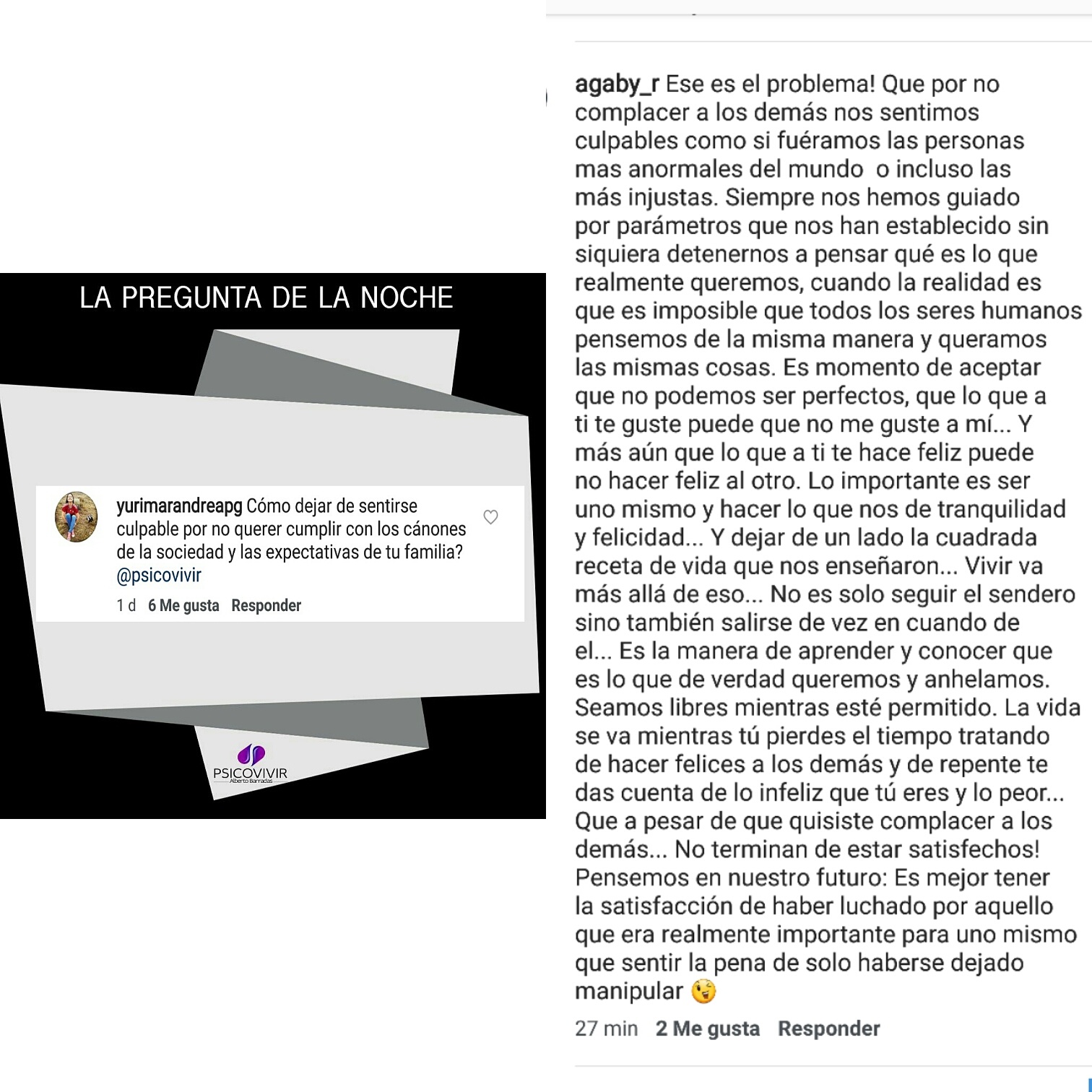 En mi Instagram todas las noches hacemos la dinámica de la pregunta de la noche. Un espacio para que uds respondan preguntas del público y de esa manera ayudar a ayudarnos.