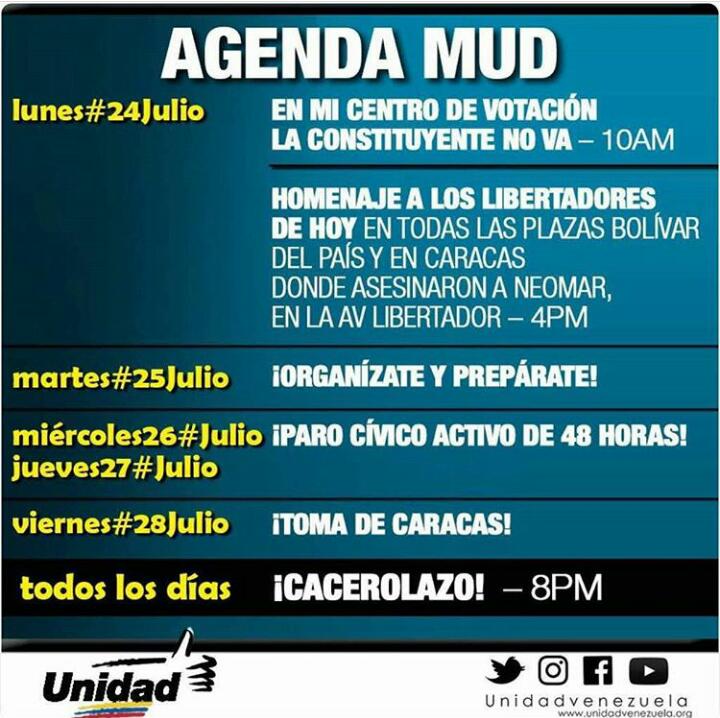 Yo pertenezco a la Venezuela donde había democracia. En esa Venezuela tu tenias libertad de opinión, podías decir pestes de los copeyanos y de adecos sin ningún rollo, de hecho ese era el deporte nacional. Esos tiempos se acabaron en Venezuela y ahora vivimos una dictadura de la opinión. Hoy en día sí opinas en contra del psuv eres opositor, y si opinas en contra de la mud, entonces eres chavista. La tesis es que hay que estar unidos, y esa justamente es la camisa de fuerza que se nos quiere endosar. Quienes piden hegemonía del pensamiento (todos debemos pensar igual = unidos) sencillamente son fascistas, no importa de qué lado estén. Ahora bien, yo sigo siendo demócrata y opino. Qué opino? Que está agenda no es suficiente. Que le falta contundencia. Que estamos por perder al país y esto no es suficiente. La mud no lo hace mal, solo que no hace suficiente. Ahora bien, que propongo? Aumentar la presión, generar gente en la calle, presionar empresarios (siempre son guabinosos), generar presión en el ala militar, generar concentraciones diarias (no marchas), que se queden en los sitios de poder sin retirarse. Generar trancazos pero no en urbanizaciones, sino frente a los centros de poder de cada ciudad. Se debe siempre ser pacifico y no quemar, no saquear ni agredir a nadie, mucho menos periodistas. Se debe llamar a paro indefinido y desobedecer en masa, todo intento de control del régimen. Nada de eso ha propuesto la mud, y no lo entiendo. Imagino que son por todos los procesos internos y ocultos que siempre ocurren en política (que son casi todos), pero por ahora, en mi visión, esto es insuficiente y la gente en su mayoría lo siente así, lo que podría hacer que la gente pase por encima de estas «estrategias» y entonces la anarquía reine, y allí no se sabe que puede ocurrir, lo cual siempre puede ser peor de lo que ya sucede. Es importante criticar a los líderes, la dirigencia, presionar y generar masa crítica.Debemos asumir nuestro rol demócrata y no escuchar las voces que imponen la dictadura de la única opinión. Apoyaré estas cosas que pide la mud, pero no dejaré de criticar que es insuficiente.