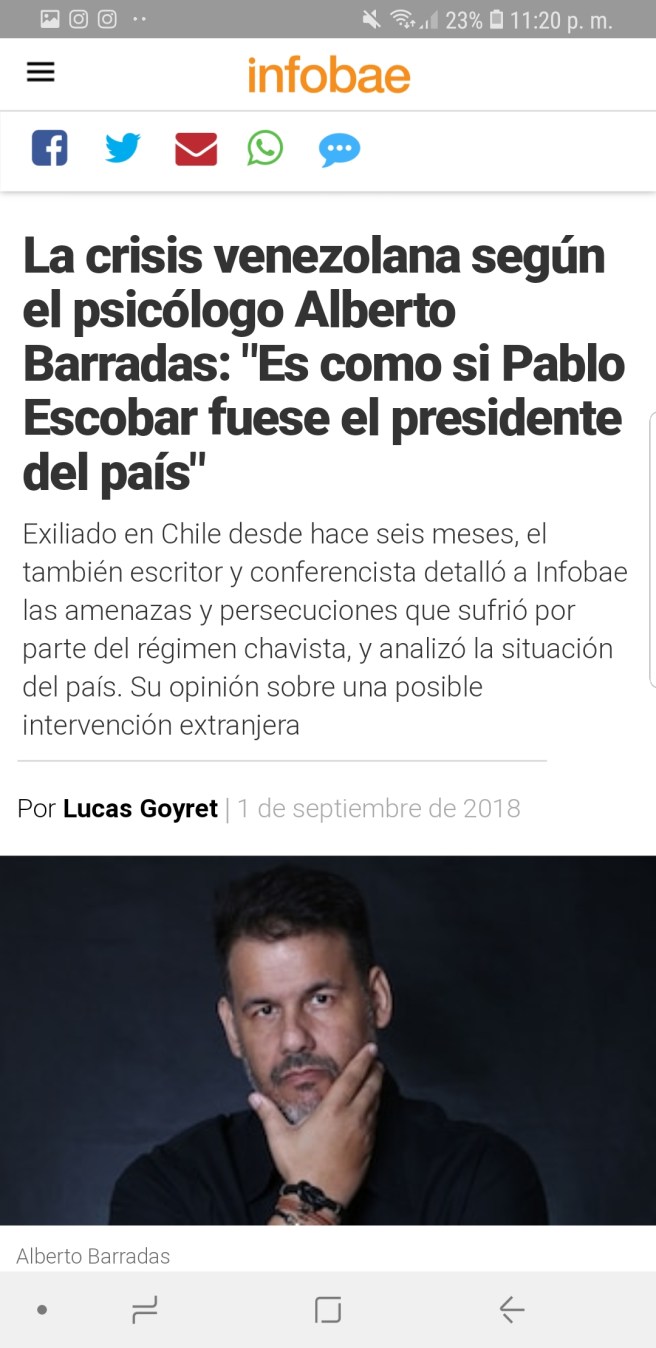 A principio de año el psicólogo venezolanoAlberto Barradas llegó a Santiago de Chile para brindar una de sus habituales conferencias, que en los últimos años lo han llevado a diferentes ciudades del continente. Lo que no sabía, y mucho menos había previsto, era que no volvería a Caracas. «Cuando vine a Chile fue para dar una conferencia, no vine con la idea de emigrar», le comentó a Infobae.