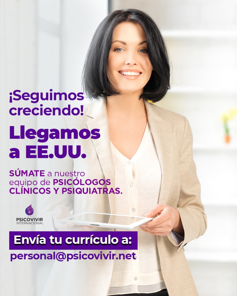 Envía tu hoja de vida al correo personal@psicovivir.net, y entra en el equipo de salud mental que está haciendo historia en el campo de la atención psicoterapéutica a nivel on line, en el mundo.