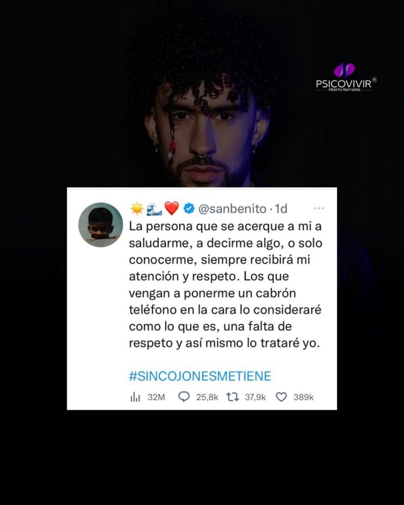 Según el razonamiento de este personaje, si tú me irrespetas, o peor aún, si yo considero que tú me irrespetas, entonces yo tengo la libertad de acción de agredirte, dañarte, causarte perjuicio, etc. Interesante que Bad Bunny no entienda de qué va la civilización y las leyes.