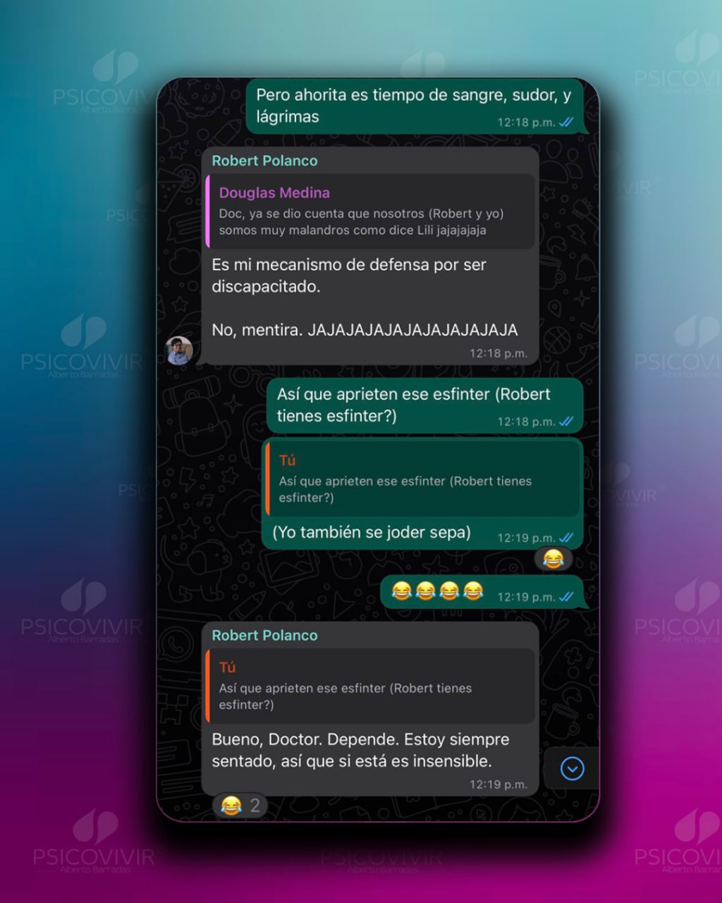 Tiene una característica muy especial, que es el hecho de reírse de sí mismo, lo cual no elimina el sufrimiento que ha tenido en su vida, pero, sin duda alguna, lo ha hecho llevar su situación de manera muy diferente.