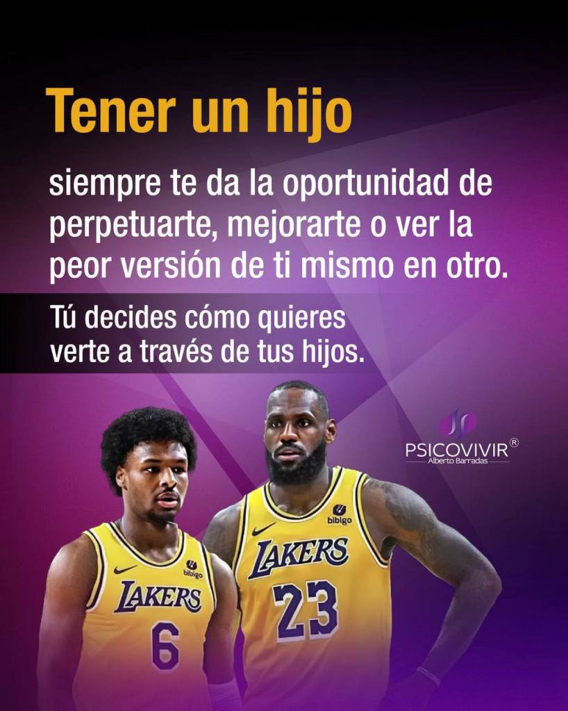 Pero en el caso de LeBron James y su hijo, que ahora juegan juntos basquetbol para el mismo equipo, los @lakers, podemos ver un caso positivo de ejemplos parentales, que luego son seguidos por los hijos, y que terminan en historias que, definitivamente, hacen sentir bien a sus protagonistas.